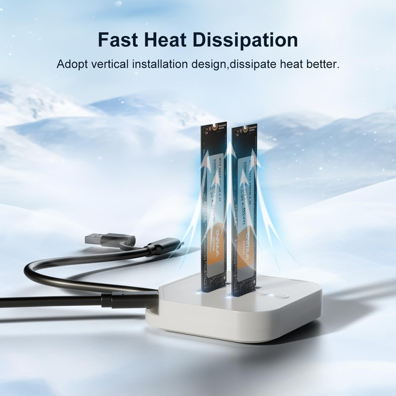- 【Enhanced Cooling for Stable Performance】The NVMe duplicator dock incorporates advanced heat dissipation technology to maintain optimal temperatures during extended cloning sessions, ensuring reliable 20Gbps transfer speeds and protecting your valuable data.