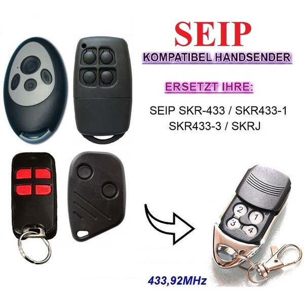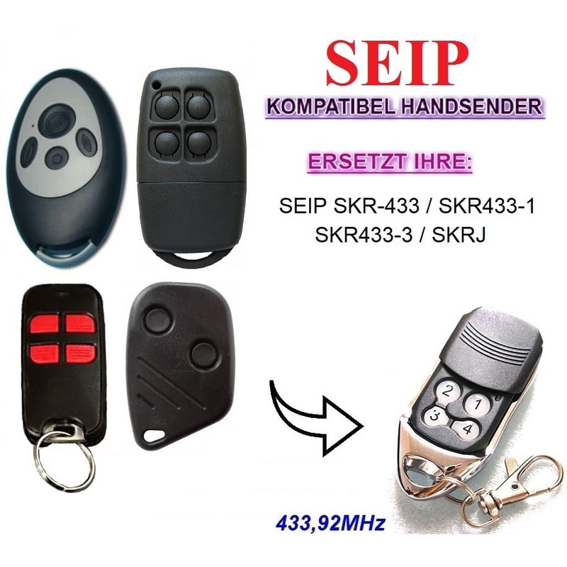 - Replaces the following SEIP SKR remote control models: SEIP SKR-433 / SEIP SKR433-1 / SEIP SKR433-3 / SEIP SKRJ