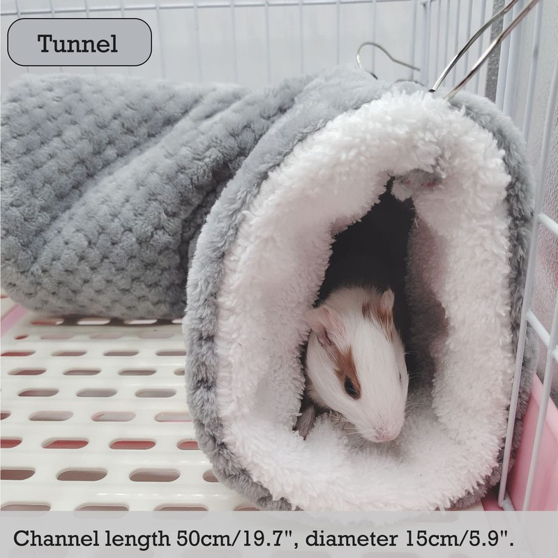 SEIS 3 Pcs Plush Hamster Hammock Set Sugar Glider Hanging Cage Accessories Set Small Animal Hammock Channel Mat for Guinea Pig Rat Gerbil Squirrel Birds Parrot (Grey)