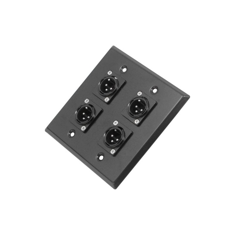 Seismic Audio SA-PLATE4 Black Stainless Steel Wall Plate with 2 Gang with 4 XLR Male Connectors