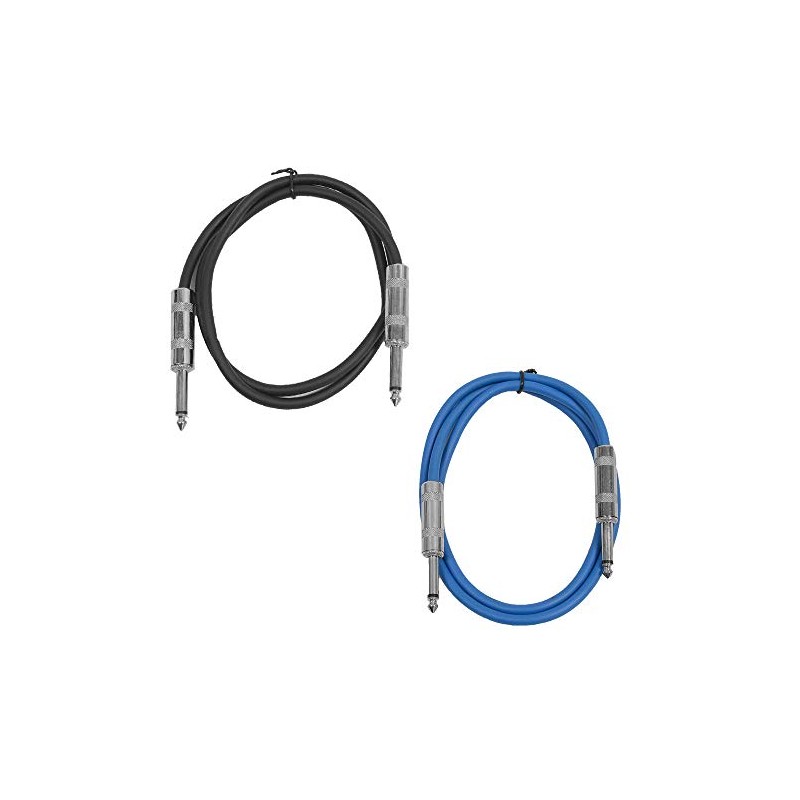 Seismic Audio - SASTSX-2-2 Pack of 2 Foot 1/4" TS Male to 1/4" TS Male Patch Cables - Unbalanced - 2 Foot Patch Cord - Black and Blue