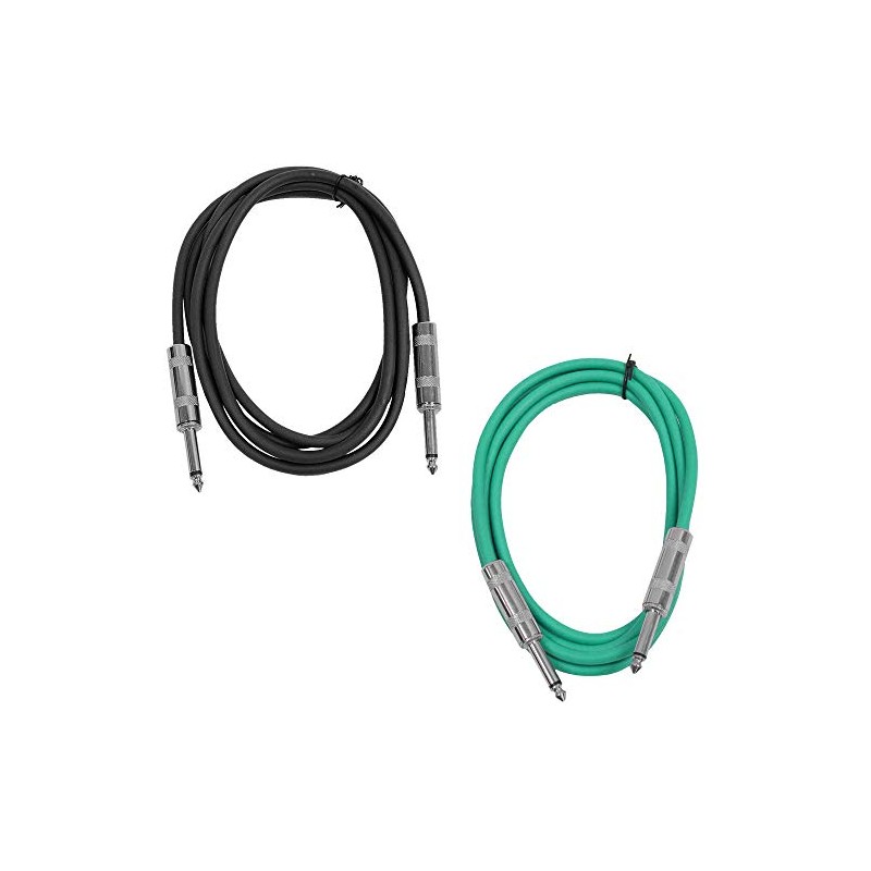 Seismic Audio - SASTSX-6-2 Pack of 6 Foot 1/4" TS Male to 1/4" TS Male Patch Cables - Unbalanced - 6 Foot Patch Cord - Black and Green