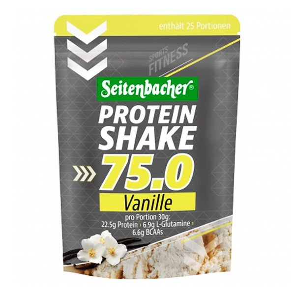 Seitenbacher ザイテンバッハ プロテインシェイク75.0 バニラ味 ホエイプロテイン WPC カゼイン ミルクプロテイン BCAA 自然由来 人工甘味料不使用 低糖質 低脂質 スムージー