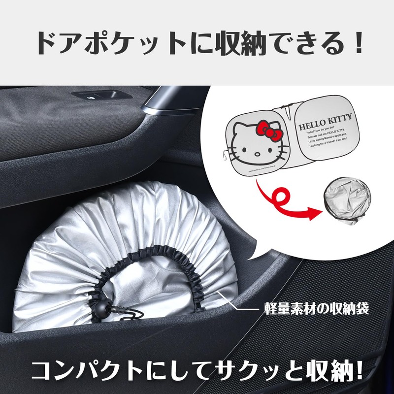 - Cute Hello Kitty Pop-Up Front Sun Shade Titanium coated fabric on the main body effectively blocks glare from the sun