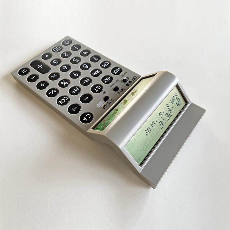 - Calculator with LCD panel on both sides Designed for in-person sales and negotiations. In addition to its flat and minimalistic design, it also has a button to switch between calculators and clocks, so it can be used not only as a calculator, but also as an interior decoration. 4 non-slip rubber backing