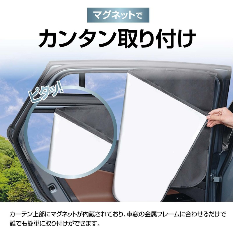 Seiwa Z119 Car Curtains, Set of 2, Easy Magnetic Curtains, L Size (W x H x H): 31.5 x 20.5 inches (800 x 520 mm), Easy Installation, Sun Shade, Uses Titanium Silver Coated Fabric, UV Protection, Total