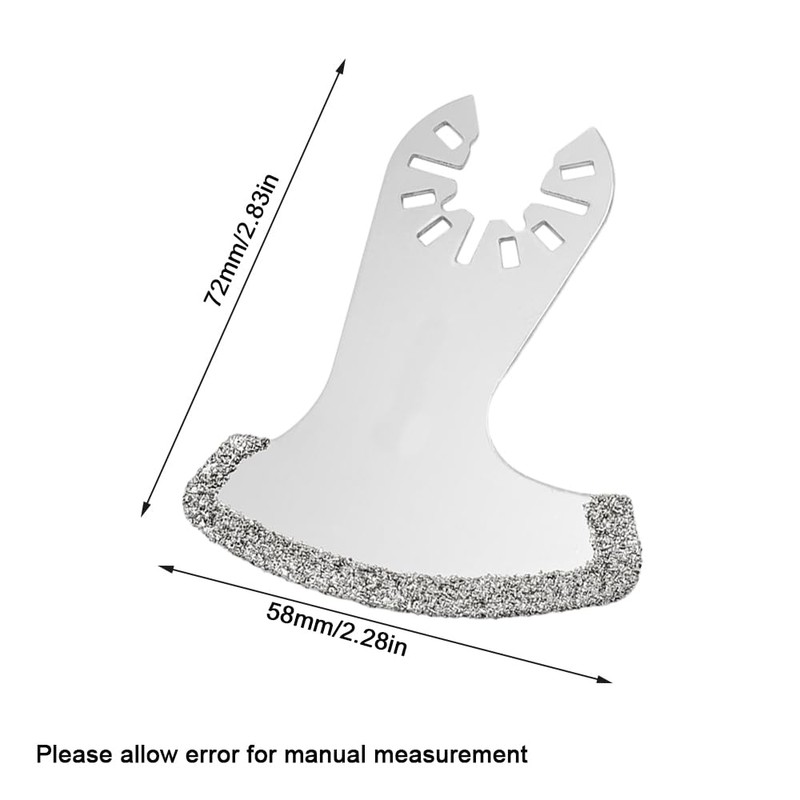- 【Compact and Practical】This blade is small and compact, measuring 72*58mm/2.83*2.28in, lightweight and easy to carry. It is a multi-tool blade that can be used to saw, cut, grind, shovel and file the stone, with this multi-tool blade, it will improve your working efficiency