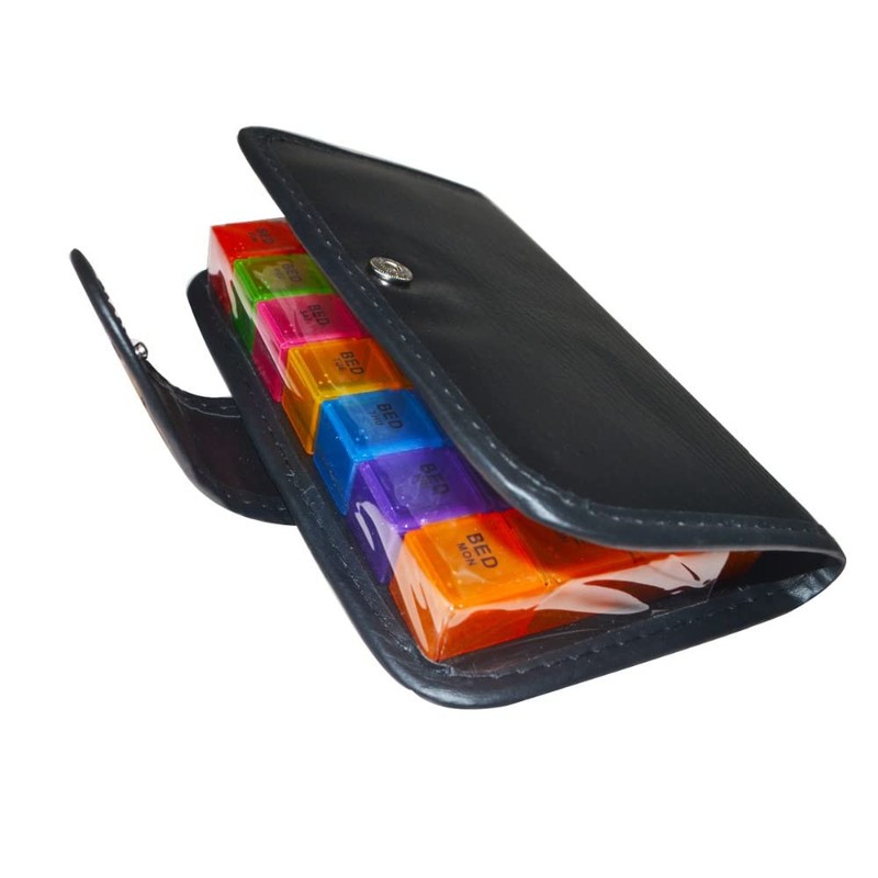 - This Pill box wallet consists of 7 individual plastic containers, each containers holds up to 6 Advil