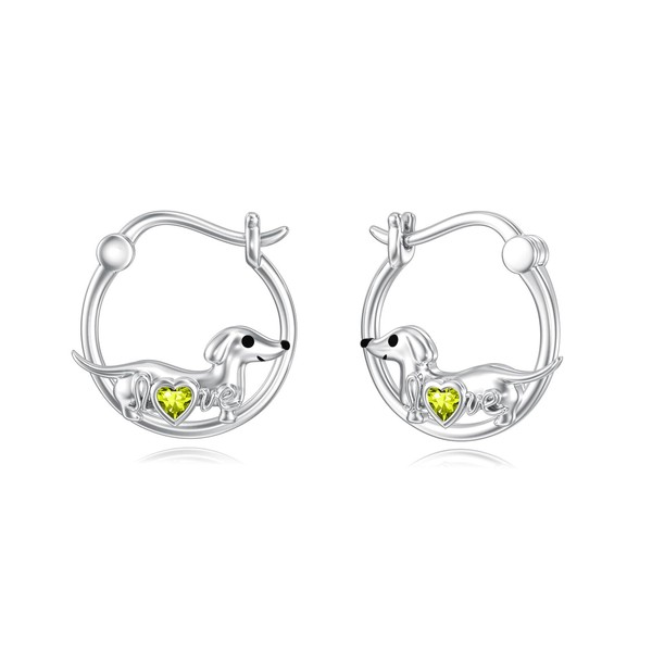 Seiyang Dachshund Dog Peridot Birthstone Earring 925 Sterling Silver Dachshund Hoop Earrings with August Birthstone Wiener Jewelry Gifts for Women Dog Lovers