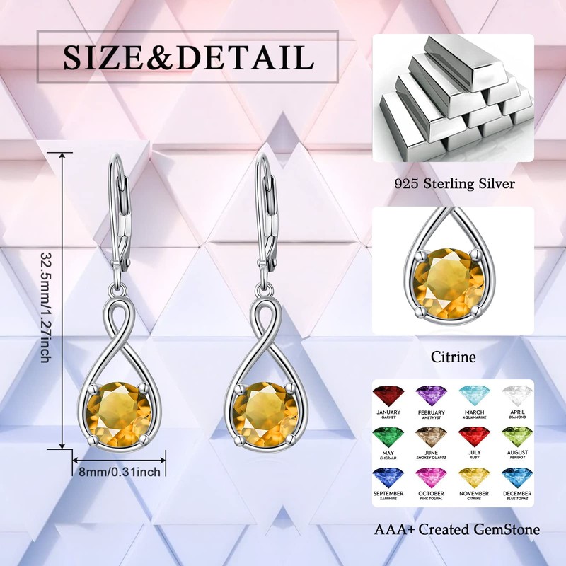 SEIYANG Infinity Earrings 925 Silver Hanging Hoop Earrings Dangle Women with 5A Cubic Zirconia Birthstone for Women Birthday Jewellery Gift for Her, 925