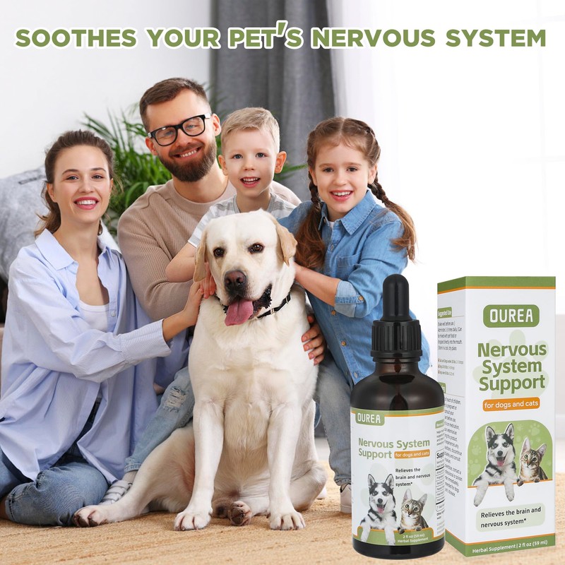 - Nervous System Support - A balanced nervous system is key to your pet's comfort and peace of mind. OUREA's nervous system support for dogs and cats is specially formulated to help calm overactive nervous activity, providing gentle support for pets who are susceptible to stress or nervous system-induced seizures. By promoting a balanced nervous response, the nervous system support drops helps your pet stay calm, stable, and comfortable.
