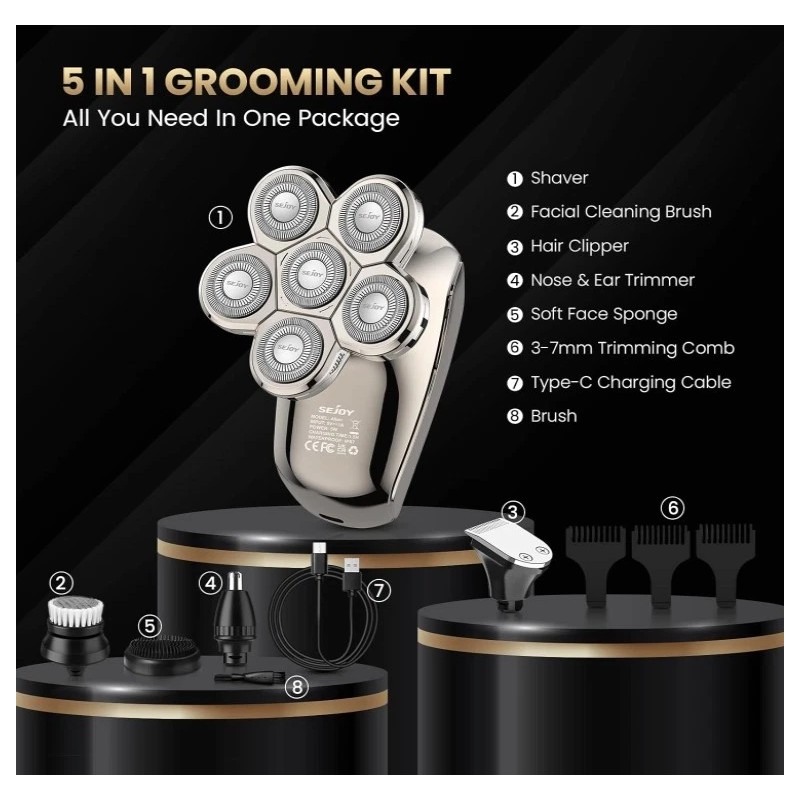 SEJOY 6D Rotary Electric Shaver Rechargeable Bald Head Hair Beard Trimmer Kit US