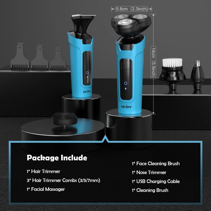 SEJOY Electric Shaver Razor Rotary Waterproof Pop-Up Trimmer 5 in 1 Cordless