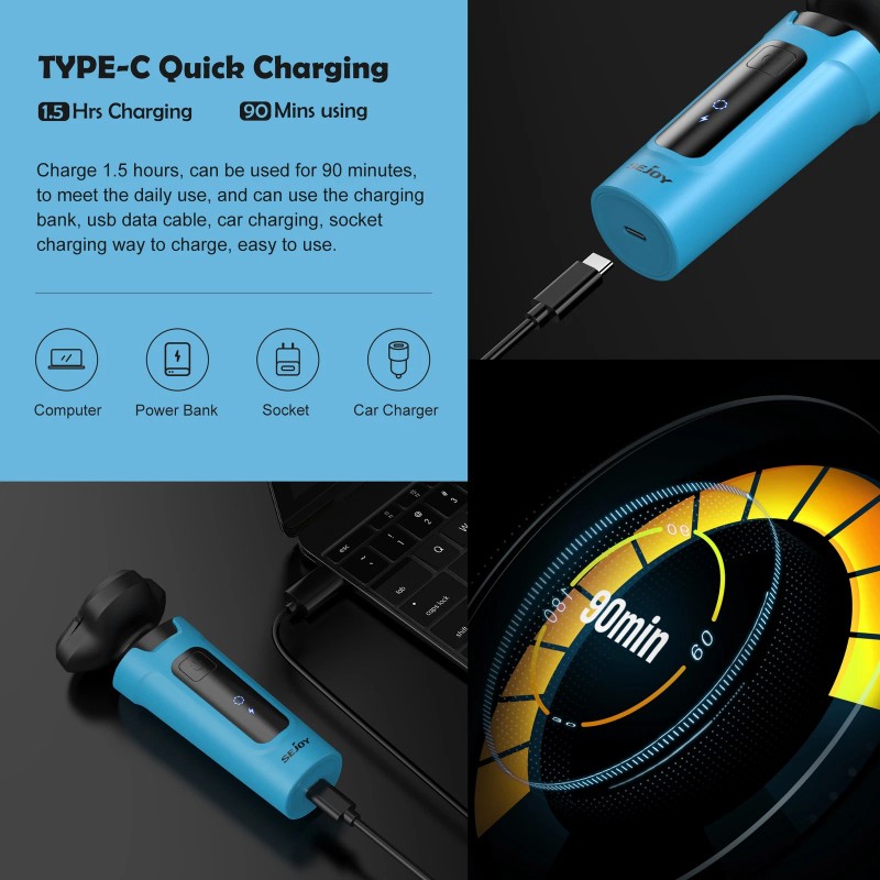 Long-Lasting Battery & Fast Charging: Enjoy up to 90 minutes of shaving time on a single 90-minute charge. Type-C charging ensures fast and convenient power-up, making it perfect for travel and daily use