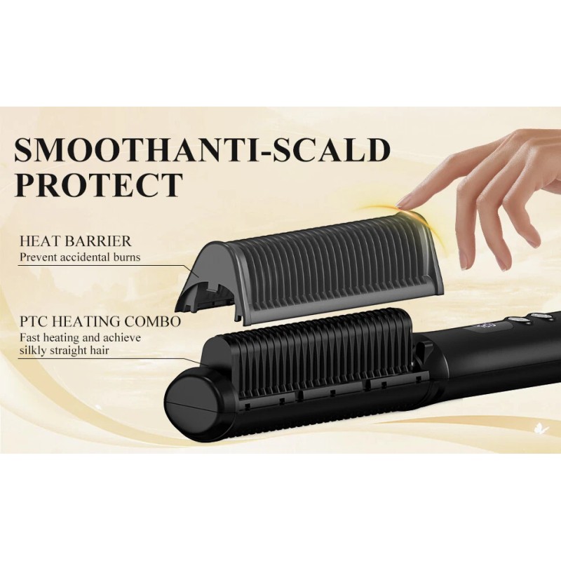 - 💇♀️ PTC Heating & 3D Brush Teeth - Our hair straightener brush adopts 3D brush teeth with PTC heating technology to deliver even heat, reducing 50% damage from heat and creates salon grades result without frizz.