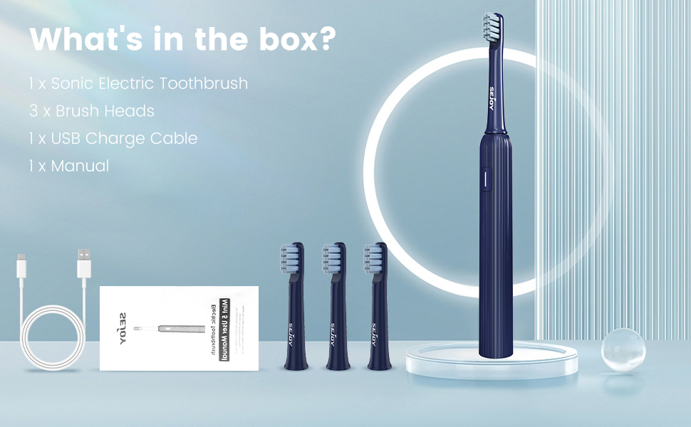 SEJOY Sonic Electric Toothbrush USB Rechargeable 3 Brush Heads 3 Modes Timer US