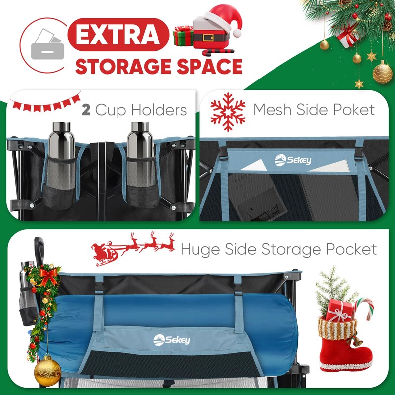 - 𝟓𝐱 𝐒𝐭𝐨𝐫𝐚𝐠𝐞 𝐒𝐩𝐚𝐜𝐞: Upgrade 𝟓𝟎'' long extended lower shelf for longer items, perfect for larger stuff like a 𝟏𝟎*𝟏𝟎 𝐅𝐓 𝐂𝐚𝐧𝐨𝐩𝐲. The double-decker design provides over 𝟓𝐱 the storage space of regular wagons, with an impressive loading capacity. Even more, the Sekey wagon comes with 𝐬𝐢𝐝𝐞 𝐬𝐭𝐨𝐫𝐚𝐠𝐞 and 𝟐 𝐜𝐮𝐩 𝐡𝐨𝐥𝐝𝐞𝐫𝐬.