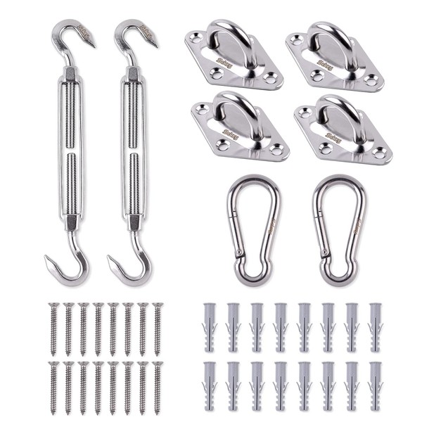 - Easy installation: with carabiner hooks, turnbuckles and brackets, this hardware kit allows easy and safe installation of your sun sail. No matter where, you can relax comfortably in the shade.