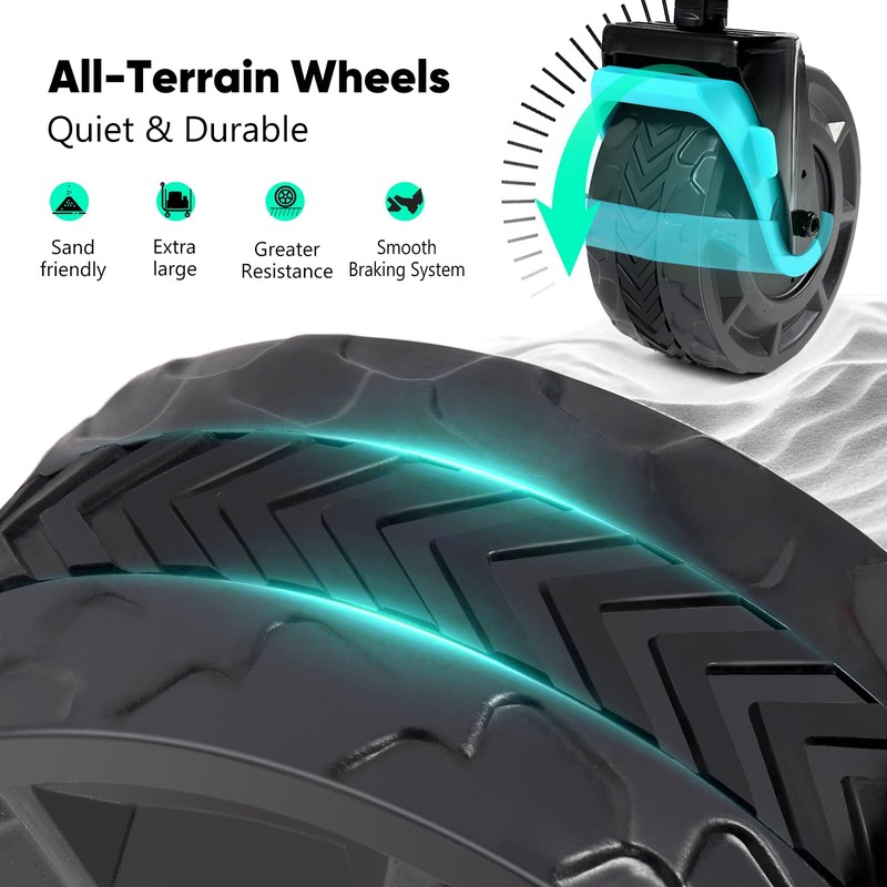 • ๐—•๐—ถ๐—ด ๐Ÿด'' ๐—ช๐—ต๐—ฒ๐—ฒ๐—น๐˜€๏ผšExtra-large, ๐—ฎ๐—น๐—น-๐˜๐—ฒ๐—ฟ๐—ฟ๐—ฎ๐—ถ๐—ป wheels with bearings for a ๐—พ๐˜‚๐—ถ๐—ฒ๐˜ ride. Equipped ๐˜„๐—ถ๐˜๐—ต ๐—ฏ๐—ฟ๐—ฎ๐—ธ๐—ฒ๐˜€โ€”step to stop and park instantly, designed for superior resistance on sand, rocks, grass, and mud.
