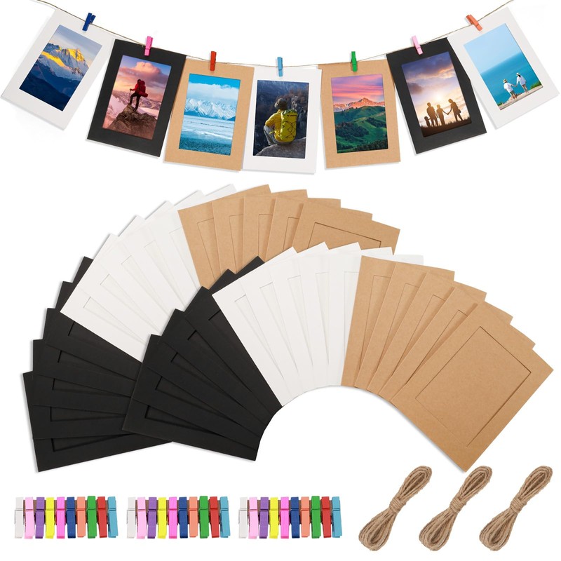 Sekonow 30pcs Paper Picture Frames 5x7, Cardboard Photo Frames, Hanging Picture Frames Photo String with Clips for Wall Photo Banner Photo Garland Display, 5x7