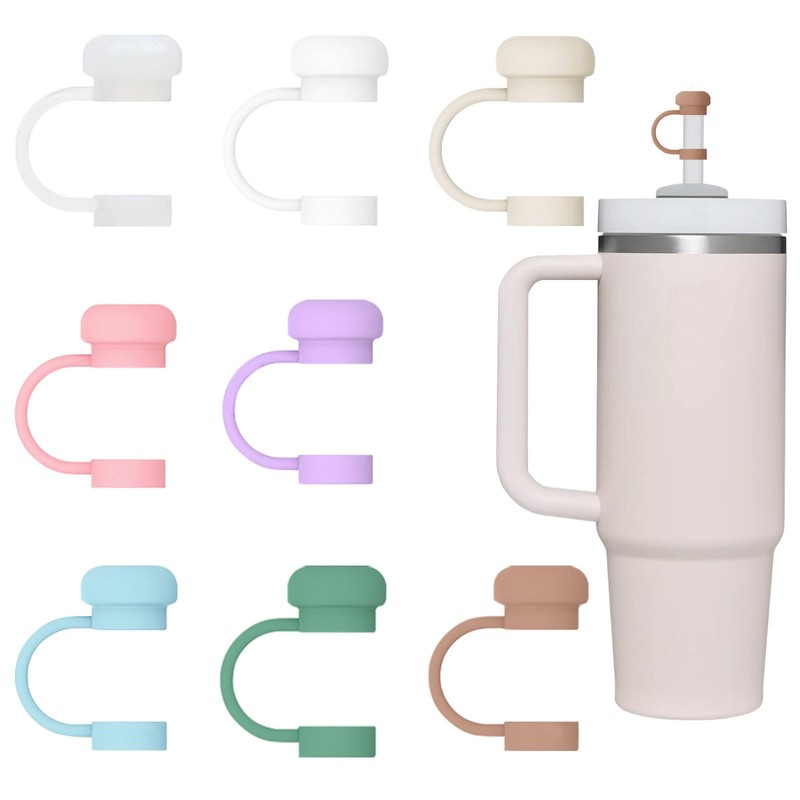 - 【8 Cute Colors】8 pieces of silicone straw cover caps, 8 colors: transparent, white, beige, blue, pink, purple, green, brown.