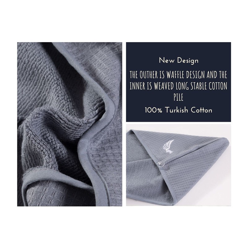 - NEW DESIGN HAIR DRYING TOWEL: Selarus hair towel wraps are made of 100% Cotton 400-GSM Premium Quality weave fabric. The outer is waffle design and the inner is weaved 100% long-stable cotton which has double yarn ring spun. Our products has Oeko-Tex confidence in textiles and BSCI(business social compliance initiative) certificates. Unlike others, Selarus hair wraps for women is not made of microfiber.