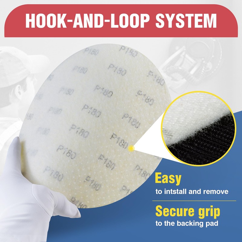 - 【User-friendly】These 225mm Velcro sanding discs are easy to attach to your sander and replace when worn out. Our back has super grip to Velcro pad for anti-slip.