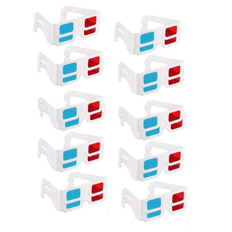 - These red and blue 3D glasses feature a paper frame that allows you to enjoy 3D videos on attractions such as theaters and amusement parks. You can enjoy 3D movies and 3D games with your family and friends with your own 3D glasses