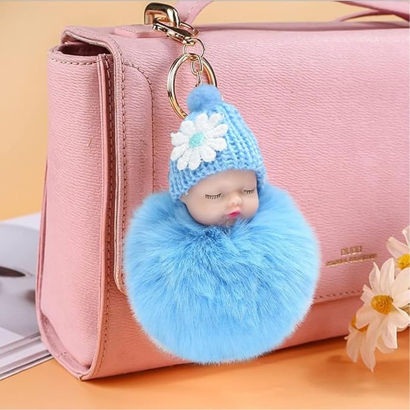 Select Zone Keyring Pompom 4 Pieces Sleeping Baby Doll Keychain Plush Key Ring Mini Baby Doll Keychain Handbag Pendant Fluffy Car Key Ring, b
