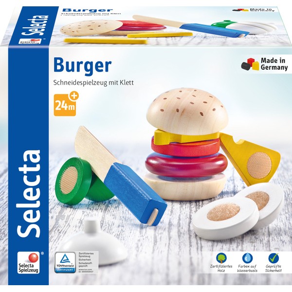Selecta 62068 Burger, Velcro and Cutting Toy Set, Multi-Colour
