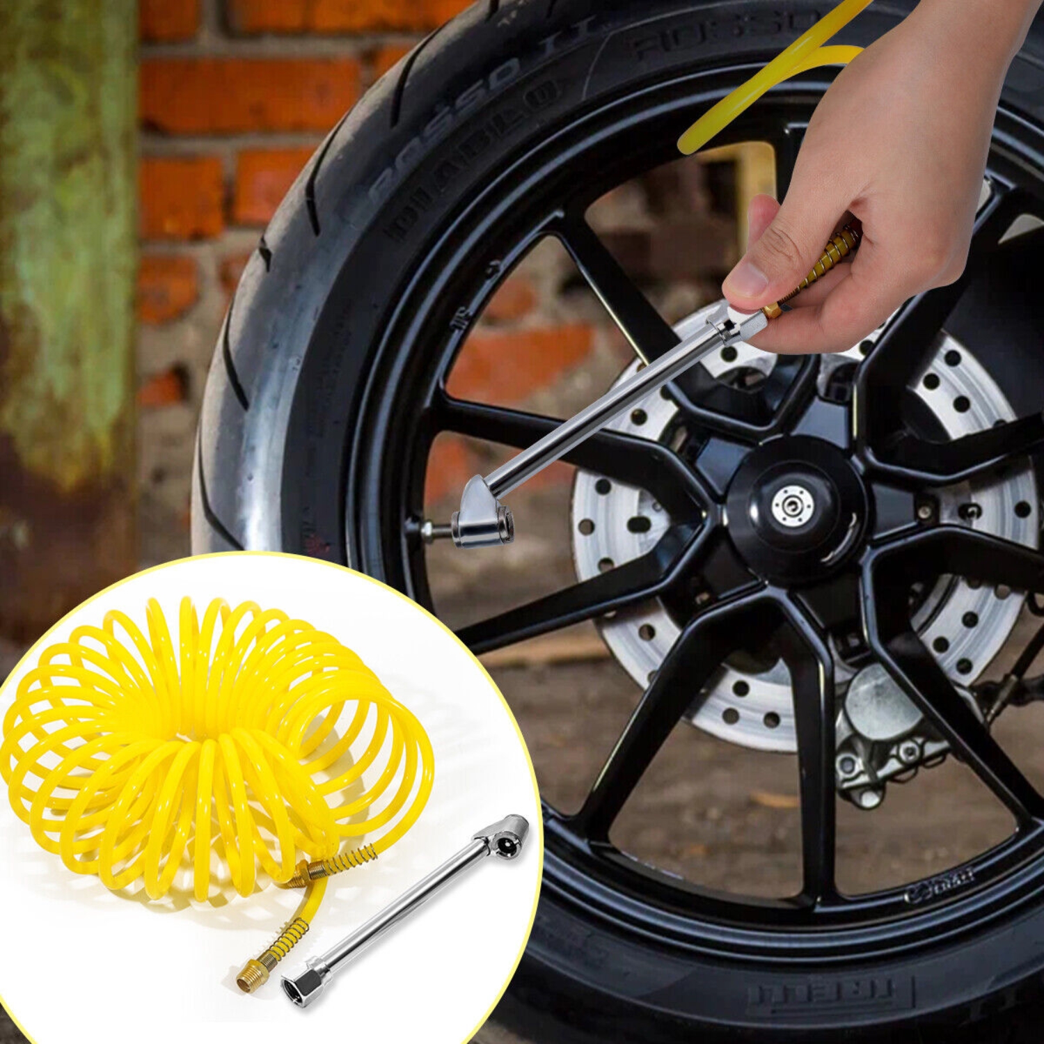 Widely Application: The 20 Piece Air Compressor Accessory Kit includes 19 essential air accessories and a 25-foot recoil air hose, meeting different needs. Used for ball pumping, balloon pumping, motorcycle, bicycle or car pumping.