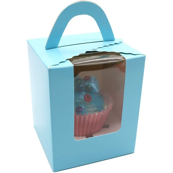 Selecto Bake 6 Pcs Paper Cupcakes Boxes, Portable Single Individual Cupcake Gift Boxes with Window Inserts Handle for Wedding Candy Boxes (Blue)