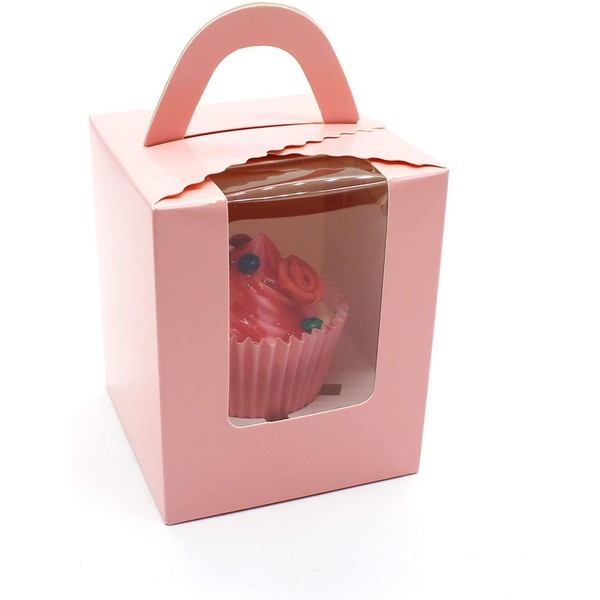 Selecto Bake 6 Pcs Paper Cupcakes Boxes, Portable Single Individual Cupcake Gift Boxes with Window Inserts Handle for Wedding Candy Boxes (Pink)