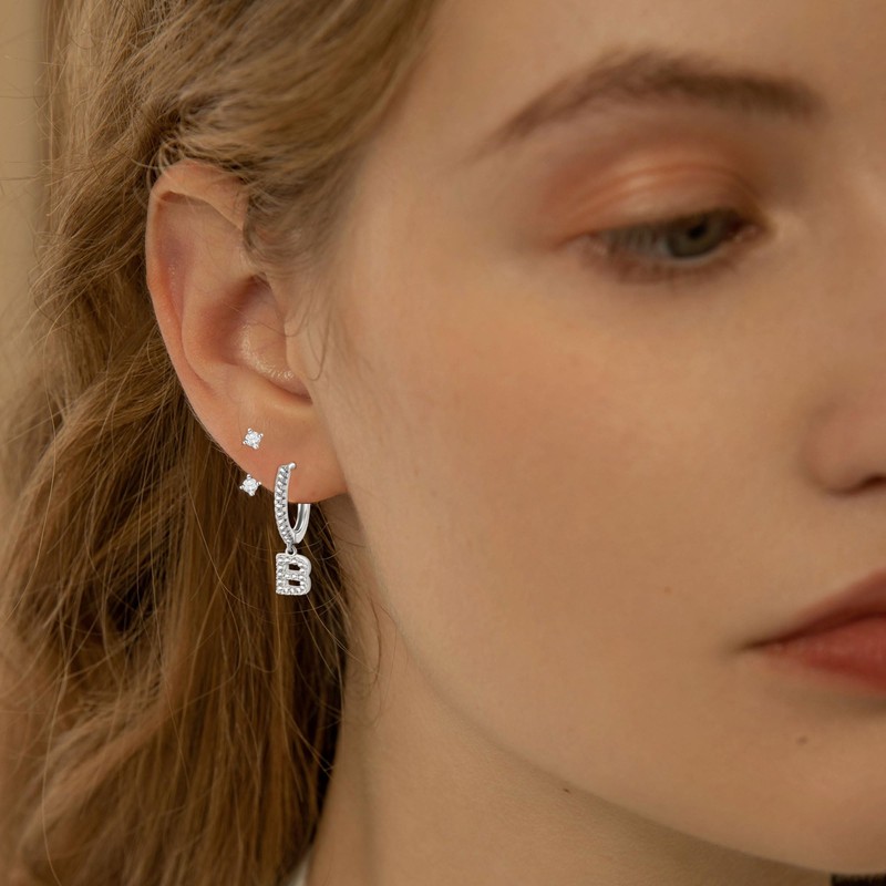 Seleneva 2 Pairs Sterling Silver Initial Letter Stud Hoop Earrings Set for Women Girls Stacks Dainty Small Earring Sets for Multiple Piercings Gifts for Mum Daughter Sisters Girlfriend (B)