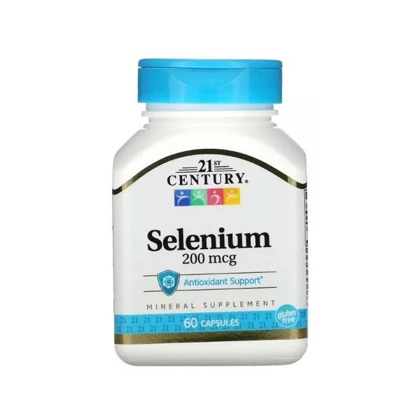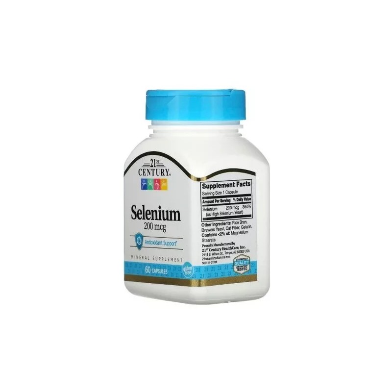 Selenio Selenium 200 mcg 60 cápsulas de Century, sabor neutro. Suplemento antioxidante que apoya el sistema inmunológico, promueve la salud cardiovascular, mejora la salud de la piel y fortalece el cabello y las uñas. También tiene propiedades anticancerígenas y es esencial para la función tiroidea. 💊✨