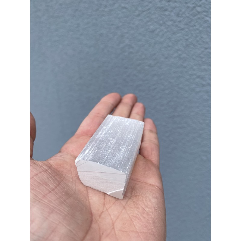 - Cleaning: should be cleaned and discharged once a month under running lukewarm water. Each selenite is unique, so the stone can vary slightly in shape and colour, as well as weight and appearance / texture. Covered fractures ground at the ends