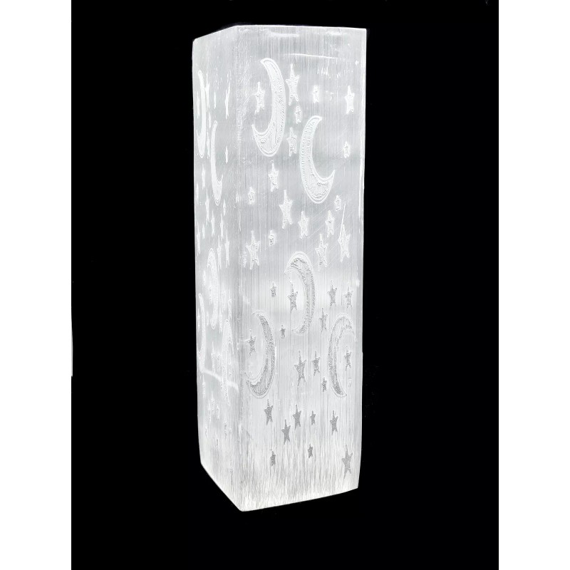 Selenite Cuboid Lamp With Night Sky Pattern Size 3"x3"x10" (Light Not Included)