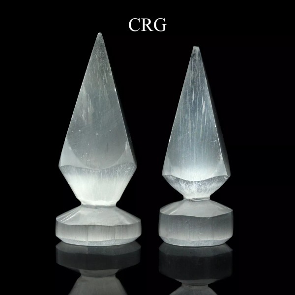Standing Crystal Selenite Obelisk Points with Round Bases