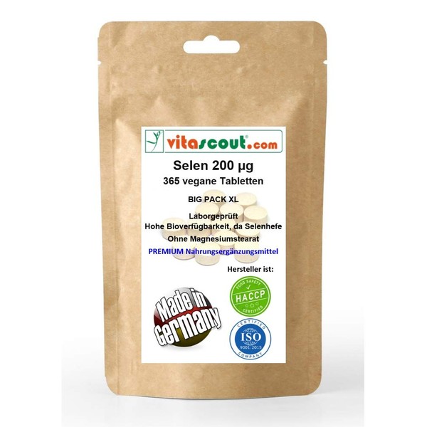 - Selenium 200 mcg/μg - 365 tablets - without magnesium stearate - laboratory tested - made in Germany - vegan from selenium yeast. High dose. Special bioavailability, as selenium from selenium yeast.