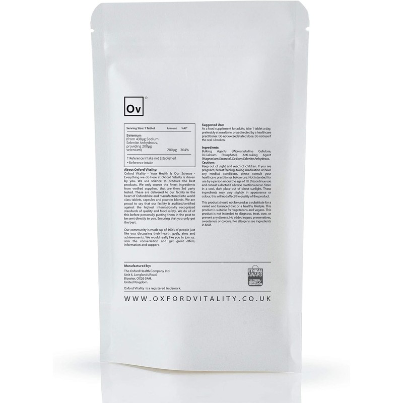 Selenium 200mcg Tablets | Immune System & Thyroid Support | Oxford Vitality