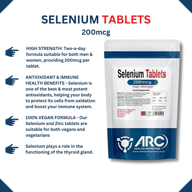 Selenium 200mcg Vegetarian & Vegan Mineral Supplement 360 Tablets, Made in UK