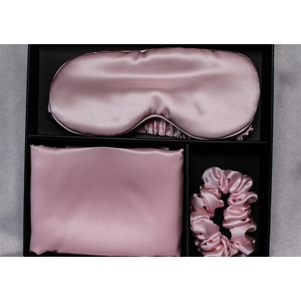 Seleny 100% Mullberry Silk Eye Mask, Pillowcase and Scrunchie Set (Soft Pink)