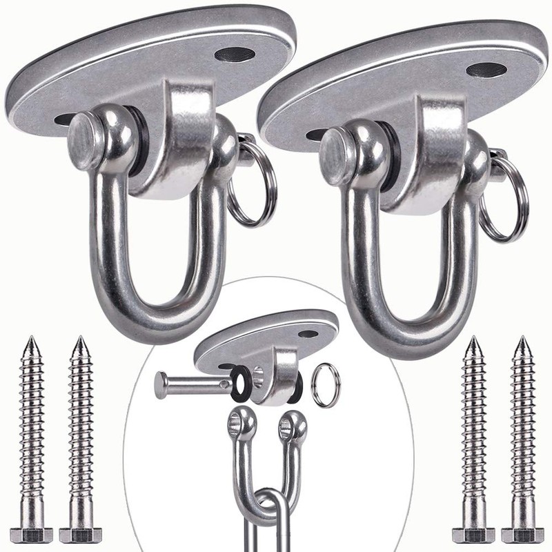 SELEWARE 2 Pieces 900KG Capacity Stainless Steel 180° Swing Hangers, Heavy Duty Swing Hooks for Concrete Ceiling Wooden, Hanging Hardware for Por Porch Yoga Playground Hammock Gym Swing Sets