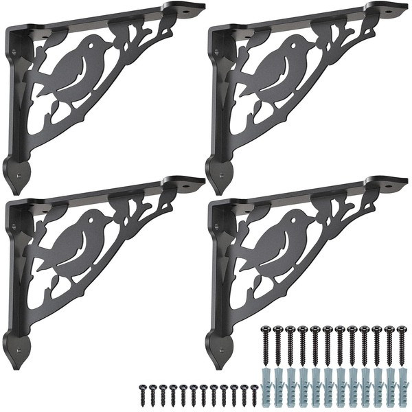 SELEWARE Bird Shelves Brackets Heavy Duty Shelf Brackets Wall Shelf Brackets Metal Corner Brackets, 12" x 8", Corner Brace, Hardware Included, 4 Pack