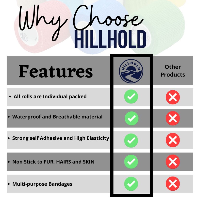 - DIMENSION - Coban wrap 2 inch by 5 yards includes 12 colors wrap bandage comes up with good ventilation. Safe for your skin and does not hurt while removing without sticking to hairs and fur.