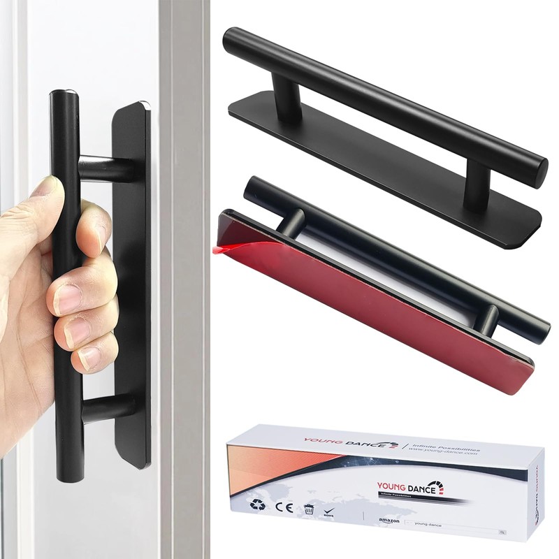 - 【Easy Replacement Without Drilling】Our self stick cabinet handles are equipped with strong non-marking double-sided tape, you can quickly add handles to cabinets, sliding doors, glass windows or drawers, and no need to drill holes, slots in the furniture. So you don't worry about drilling holes to damage your furniture. The self-adhesive handle has super strong pulling force, can withstand the pressure of frequent opening and closing, and is not easy to fall off