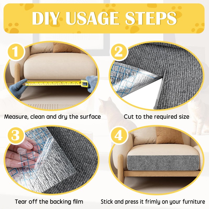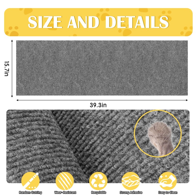 - Easy Installation with Strong Adhesion: Thanks to its self-adhesive backing, our trimmable self adhesive cat carpet mat sticks securely to various surfaces like wood, leather, and fabric. It's incredibly easy to peel and stick, offering a mess-free, damage-free solution that stays in place, even with vigorous scratching.