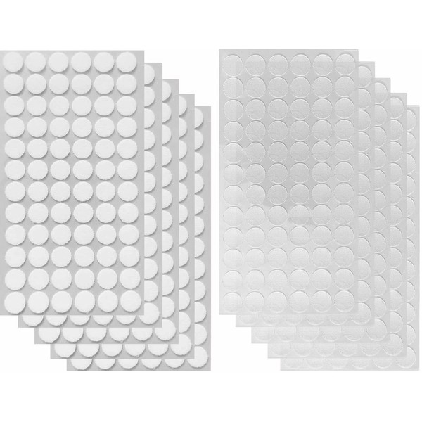 Self Adhesive Dots, Strong Adhesive 1000pcs(500 Pairs) 0.59" Diameter Sticky Back Coins Nylon Coins, Hook & Loop ClearDots with Waterproof Sticky Glue Coins Tapes, Suitable for Classroom, Office, Home