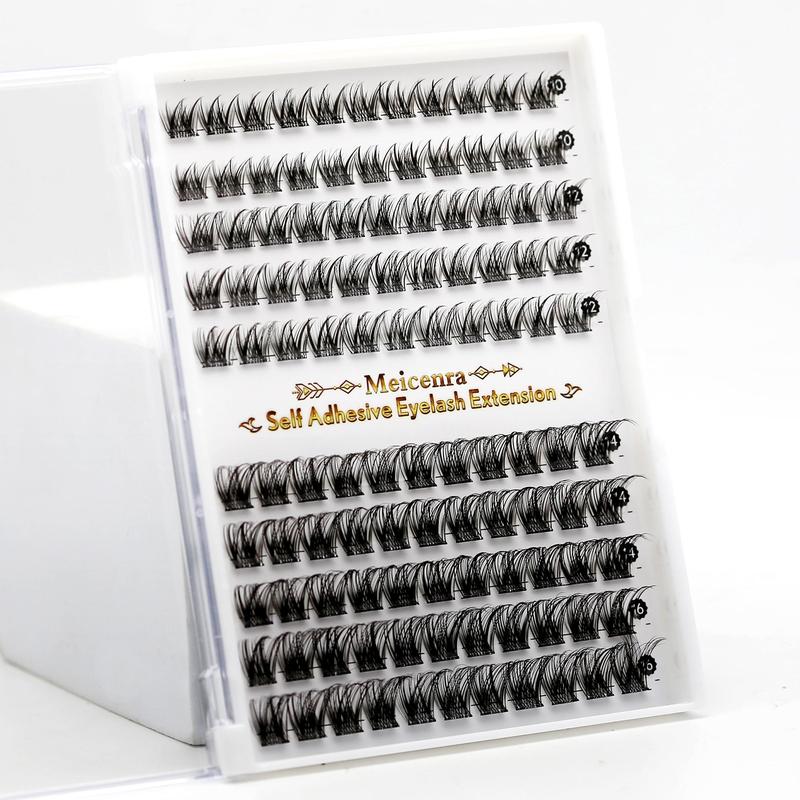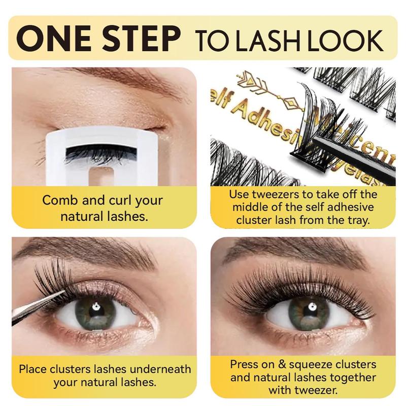 Self Adhesive Eyelashes Cluster, 1 Set Mixed Length Individual False Eyelashes with Tweezers, Eye Makeup Enhancement Tool for Women & Girls