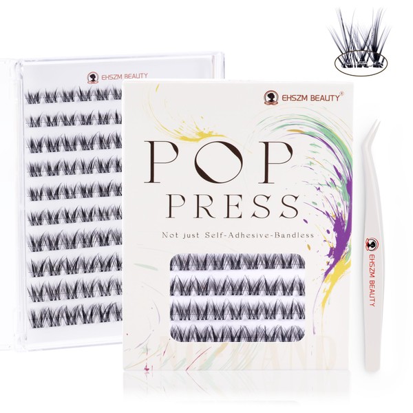 Self Adhesive Eyelashes - EHSZM BEAUTY POP-PRESS manga lash clusters | Invisible Band | No Glue, 3s Easy Apply, 24H Hold No Plastic Feeling, Natural Blend for Daily/Party (SA-Astra 10-16mm Kit)